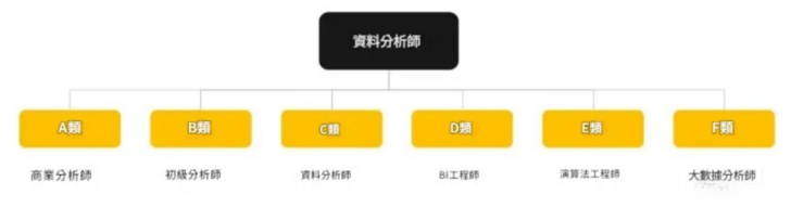 常見的幾個資料分析師劃分,主要包含這6大類,當然每一類其實也有自己的層級,我只是做一個簡單的區分,讓大家有一個基本的概況。