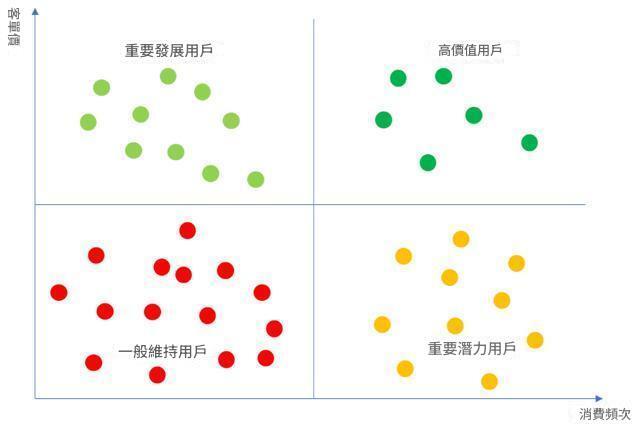對以上四類使用者,我們可以用最簡單直觀的四象限法分類: