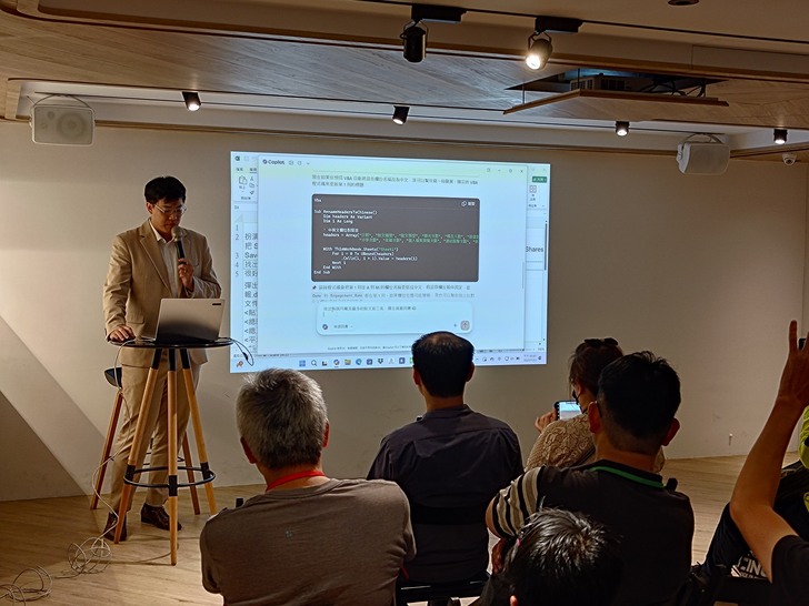 講者示範了如何透過 AI 幫助 Excel 使用者快速生成 VBA 程式碼 解決長久以來重複人工操作的痛點