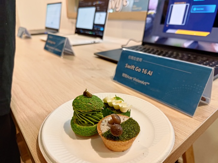 不得不說 所有展示用的 Acer 筆電也都非常漂亮 螢幕品質高 整體設計感十足 在場的每一台筆電幾乎都具備輕薄高效與強大 AI 運算能力 是行動工作者和創作者的理想搭檔