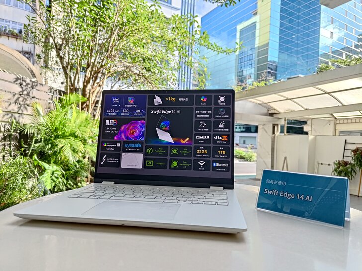 其中 Swift Edge 14 AI 最讓我印象深刻 它搭載 Intel 最新的 Lunar Lake 處理器 內建 48 TOPS 的 NPU 同時具備超輕機身與超長電池續航力 支援 Copilot Plus 系統 包括 Recall 即時字幕與生成式影像等前沿功能 是一台真正為 AI 而生的筆電