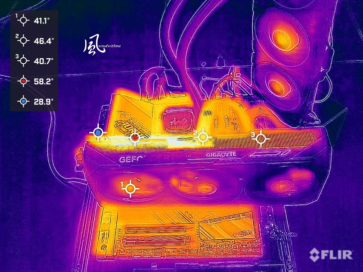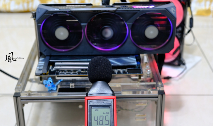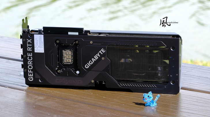 右方延長的散熱鰭片為SCREEN COOLING散熱設計,讓風流穿越提升散熱能力,目前中高階顯卡常見的設計,照片中能隱約看到正面風扇。