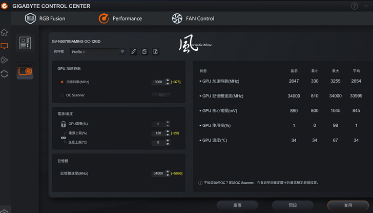本篇主角為GIGABYTE推出的RTX 5070 GAMING OC 12G,在5070產品線屬於中階用料定位,此外預設值為拉高的超頻時脈,效能會比入門款5070較高。