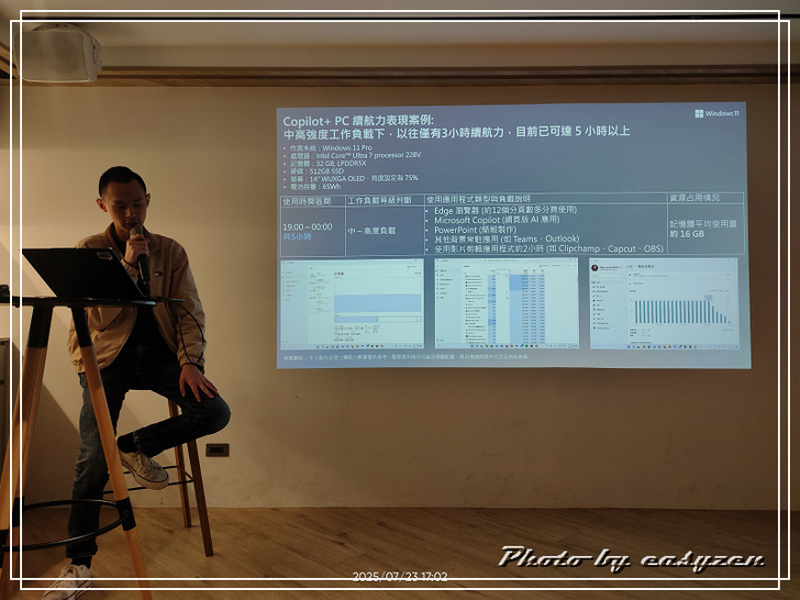 Copilot+ PC在中高強度工作負載下的續航力表現案例。