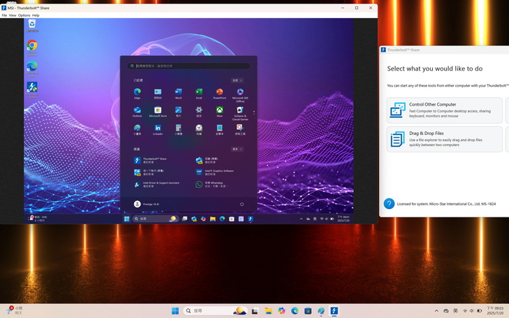 效能測試使用目前市場上支援TB5規格及認證的MSI Titan 18 HX AI旗艦級筆記型電腦,內建2個TB5接孔。