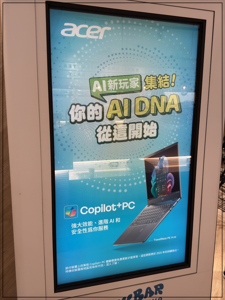 聽完次的講座,我更清楚AI在雲端及地端的運作方式,也瞭解到AI PC不只是廠商的宣傳手法,而是能夠在AI時代提升您工作效率的工具,透過地端NPU分散雲端的運算,可以更快速的導入AI功能。「工欲善其事、必先利其器」,想要早點進入AI的領域,使用AI筆電可以讓您更方便、快速的運用AI工具,Acer AI筆電的強效功能,幫助您在AI世界的探索中提前佈局,早日進入AI的世代。