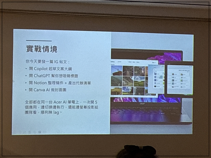 本次活動由T客邦與Acer電腦合辦,除了講師說明AI的運用之外,也展示了Acer筆電如何運用Copilot+PC更快的運用各種AI工具。