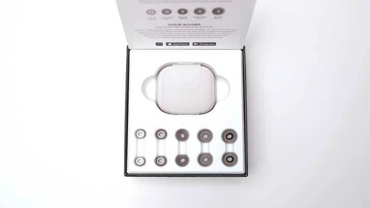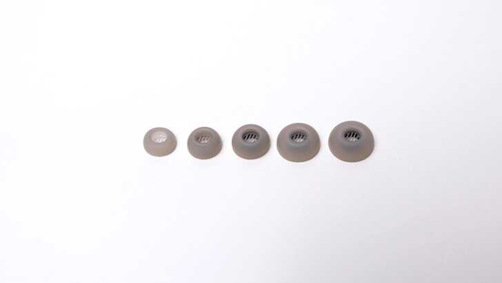 耳塞的部分額外附了 5 種大小,分別是從 XS~XL,耳機上也預裝了一副 M 大小的,也就是一共有六副耳塞可以替換。
