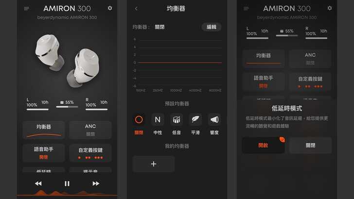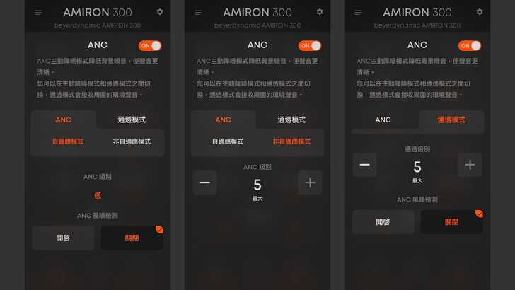 降噪部分,AMIRON 300 主打 5 段式 ANC 主動降噪。不過實際體驗下來,降噪效果只能算是中規中矩,有可能是我體驗過其它廠商的黑科技,所以 AMIRON 300 的主動降噪相比起來就顯的比較普通。基本上還是能有效降低環境噪音,不過跟某些主打極致降噪的同價位產品比起來還是有一點差距,但對我來說日常通勤基本上已經夠用了,稍微的降噪加上中等音量還是能很好的沉浸在音樂世界中。
