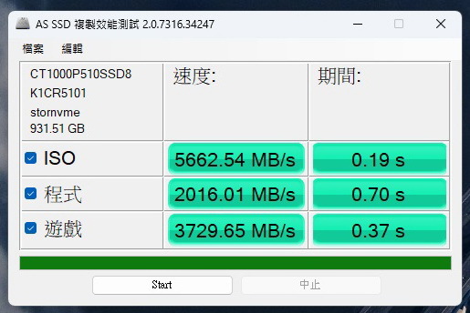 複製效能測試 - ISO、程式與遊戲速度 分別為 5662.54MB/s、2016.01B/s、3729.65MB/s。
