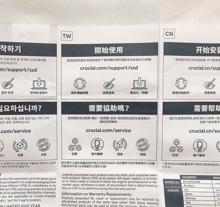 ▼ 多國語言的產品說明書,依照連結可以下載 美光軟體 Crucial Storage Executive。
