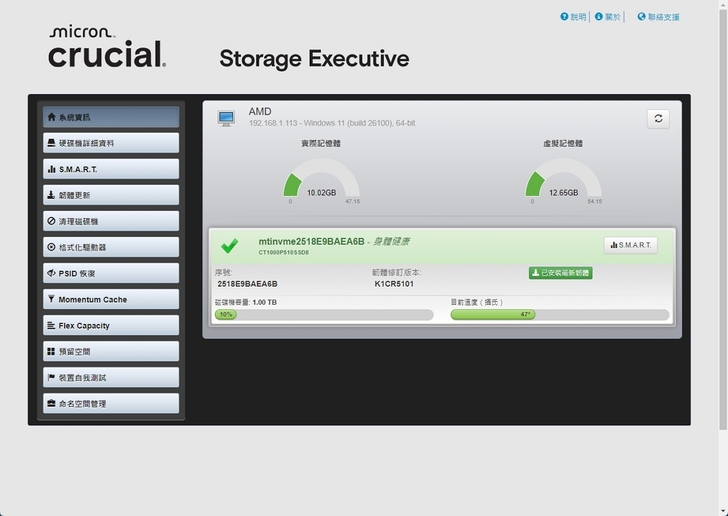 這套軟體是美光獨家用心設計的就像 SSD 的「控制中心」