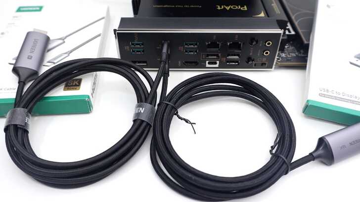 另外還有一些線材配件,讓你可以直接從 Thunderbolt 5 的電腦接到螢幕。UGREEN CM565 是一條 USB-C to HDMI 8K 60Hz 的轉接,8K 真的離還我還太遠。另一條也是支援超高畫值,CM707 USB-C to DP2.1。能夠支援到 16K 30Hz、8K 60Hz。我現在還在 4K 螢幕,這些動輒 8K、16K 的螢幕完全不是我現在買得起的。總之隨著 Thunderbolt 5 頻寬提高,可以支援的螢幕規格也往上。