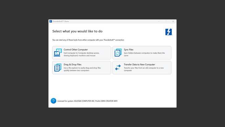 因為 ASUS ProArt Z890 Creator 這張主機板本身是具有 Thunderbolt Share 的授權,所以我讓他直連 ASUS TUF Dash F15,不用透過 Dock。兩邊各別裝好 Thunderbolt Share 後,就可以直接使用。