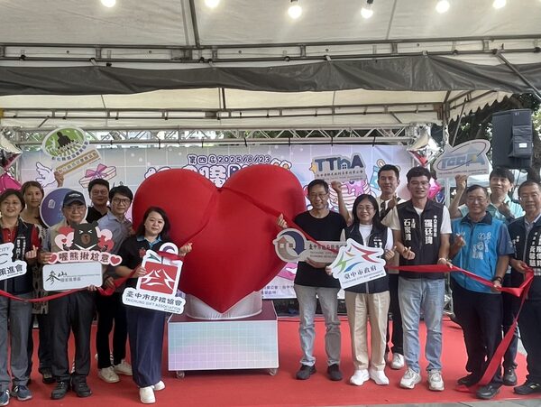 與會貴賓與長官共同啟動為愛的粉紅泡泡情人節星光市集。(圖片來源/台中市好禮協會提供)