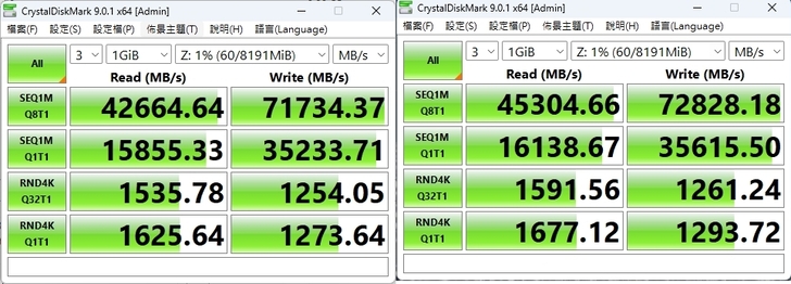 7200MT/s效能比左邊高,幾乎所有項目都有小幅提升。