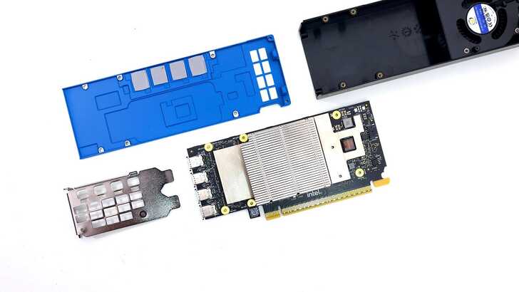 核心晶片的部分,為 Battlemage 架構 BMG G21,採用 TSMC N5 製程。具有 16 個 Xe² Cores,16 個 Ray Tracing Units,128 組 Intel XMX 引擎,128 個 Xe Vector 引擎。