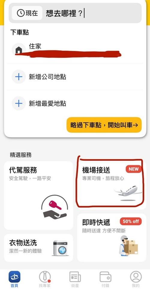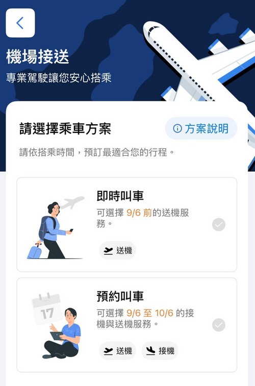 下載之後可以看到右下角有機場接送,點進去就可以開始預約
