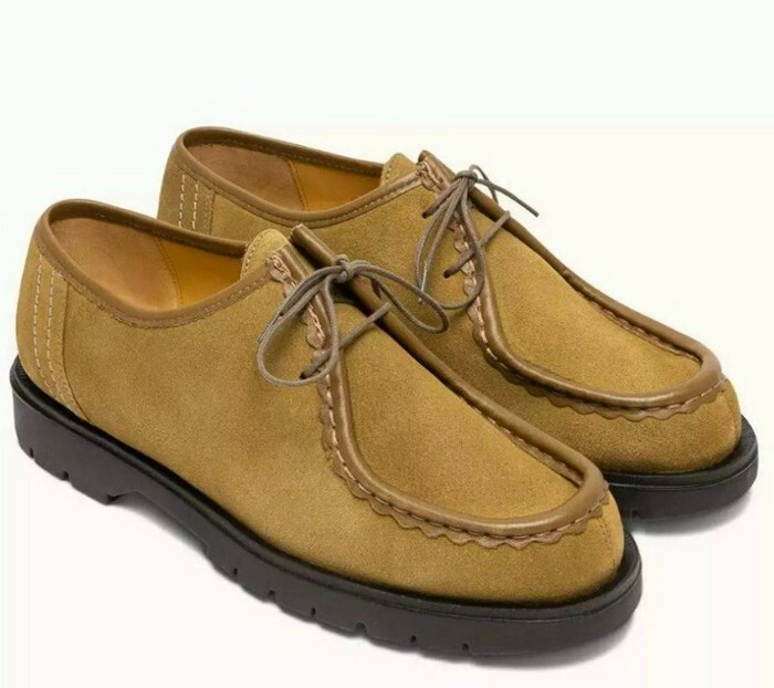 後來我們又去看 Kleman,剛好在潮流店有看到是一雙卡其的袋鼠鞋,線條俐落簡單卻很有特色,他穿上去看起來真的很有氣質,但鞋子硬挺走起來他說需要磨合,最麻煩的是這個牌子在台灣很少見,除了幾乎沒有現貨之外,當下試穿發現不合腳也沒有其他尺寸可以在試穿,加上買了之後保養維修也比較麻煩,所以最後也放棄