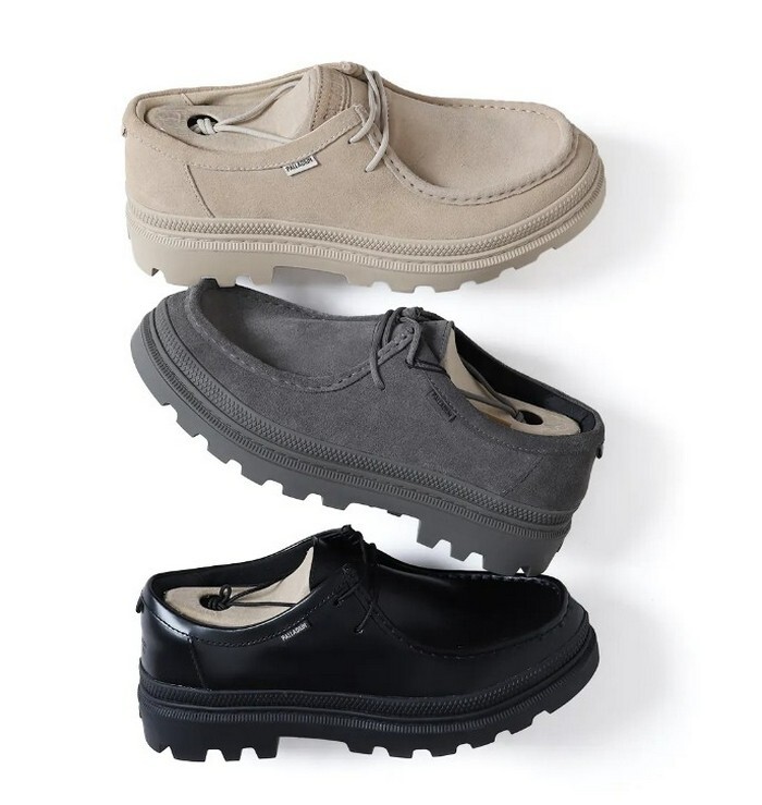 再來看到 Palladium 的袋鼠鞋系列,黑色的款式加上厚橡膠大底,看起來比較潮流穿起來很輕,他說腳感很自在適合日常的時候穿,但我覺得造型偏年輕,不太適合正式場合,對他這個年紀來說怕會顯得太隨性,在我們討論之後就說那再看看其他鞋子