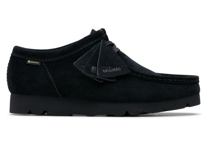 於是我們開始找,最先試的是 Clarks,他試穿那雙黑色 Wallabee GTX外型很經典,鞋面是反毛皮摸起來厚實,穿上去的時候我覺得蠻好看的,但他走了幾步就說鞋頭有點窄,腳趾被卡住的感覺不舒服,雖然穿起來很軟但走久還是會有點不舒服,而且它的材質很容易顯髒要常常清潔,不太符合他懶得保養的個性