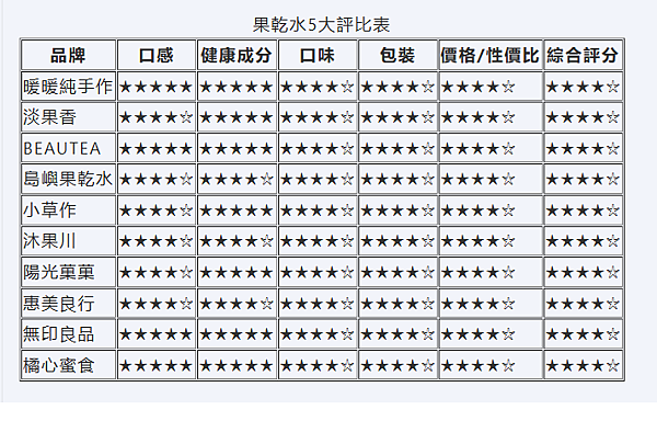 各大品牌的果乾水各有特色,消費者可以根據自己的需求選擇最適合的產品,無論是追求健康、便利還是高質感,都能在這些選擇中找到自己滿意的答案。