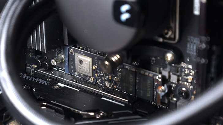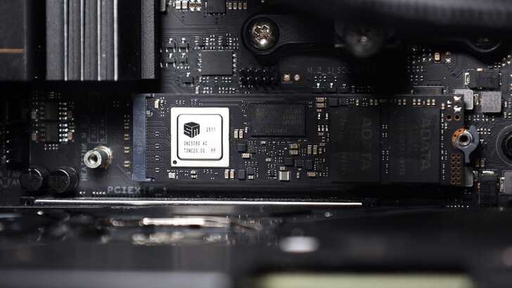 由於 ADATA MARS 980 BLADE 標籤貼紙位於背面,正面留下了完整裸露的 IC,對於 PCIe Gen5 SSD 這種發熱較高的產品來說,即便是 DIY 玩家也能透過主機板搭載的散熱片做好散熱。對於進階玩家更是利多,不管是自己選擇合適的散熱片,或安裝在其他地方,都能避免標籤貼紙成為阻熱貼,能在避免破壞保固的情況下自由選擇散熱方案。