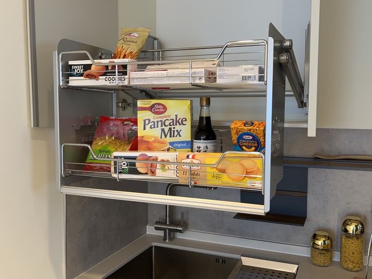 還有下拉式升降櫃,現在家裡高處的東西拿不到還要踩一個小板凳,有這個方便很多