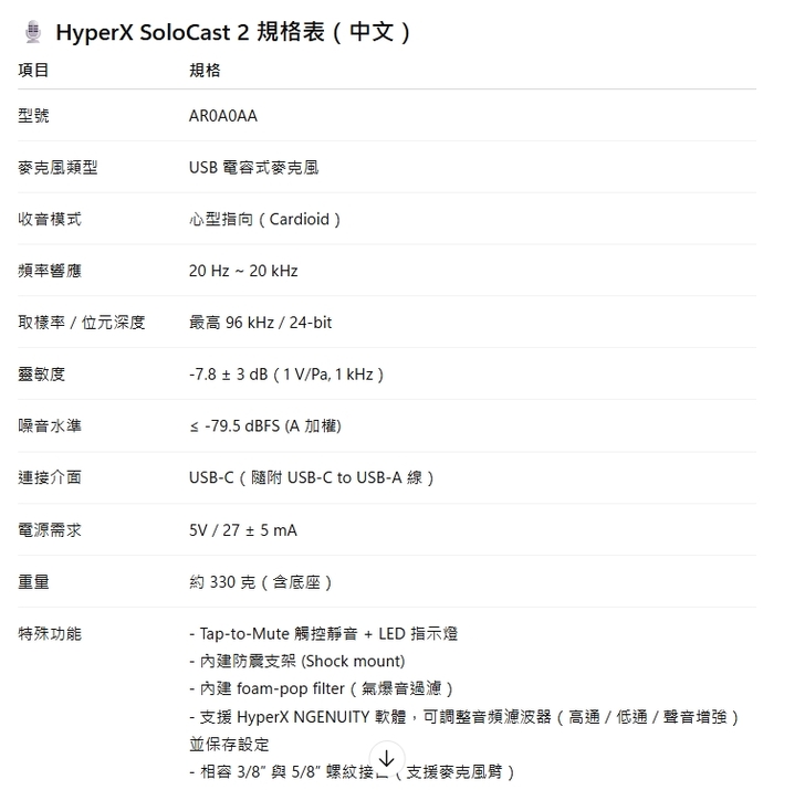 如果之後 HyperX SoloCast2 可以出白色版本,應該也會再收一隻