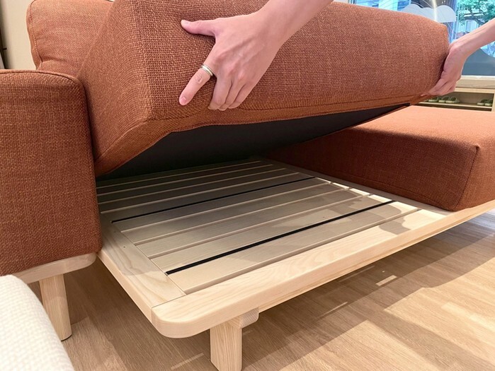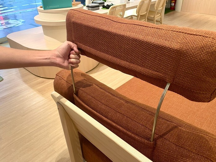 還有一點很貼心的是他們在木板上坐了止滑的魔鬼氈條,如果坐在上面的時候就比較不容易滑下來,另外讓我覺得差很多的是結構,之前的沙發常常坐一坐就會搖晃,所以在挑選的時候就希望能找耐用的沙發,而他們家適用實木榫卯結構,相對來說除了不容易搖晃,搬的時候也完全沒有螺絲外露的問題,這一點對我來說蠻重要,因為不希望花一大筆錢買來的東西兩三年就要換掉