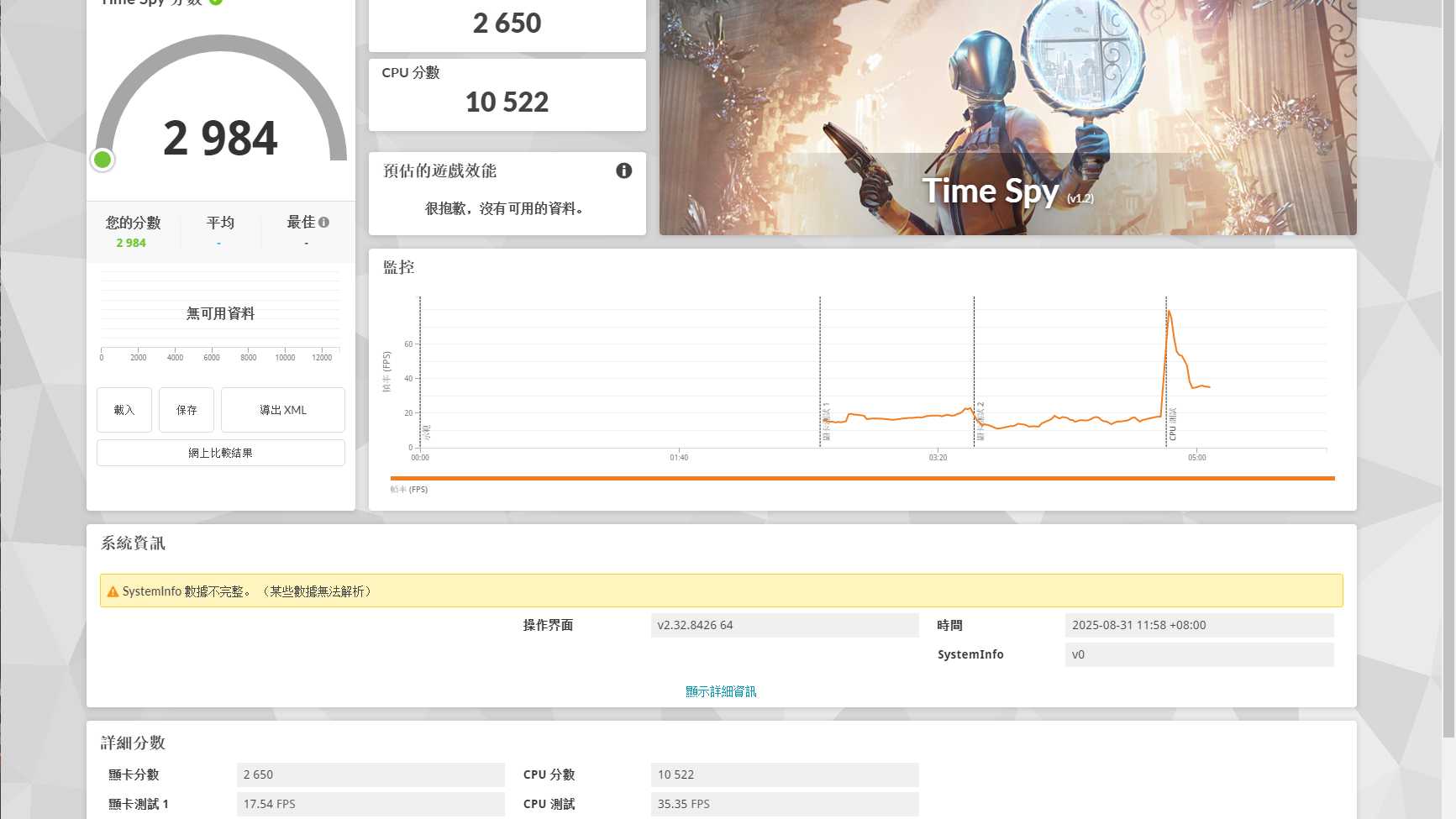 Time Spy Extreme,模擬 4K 遊戲的表現,得分 1388。