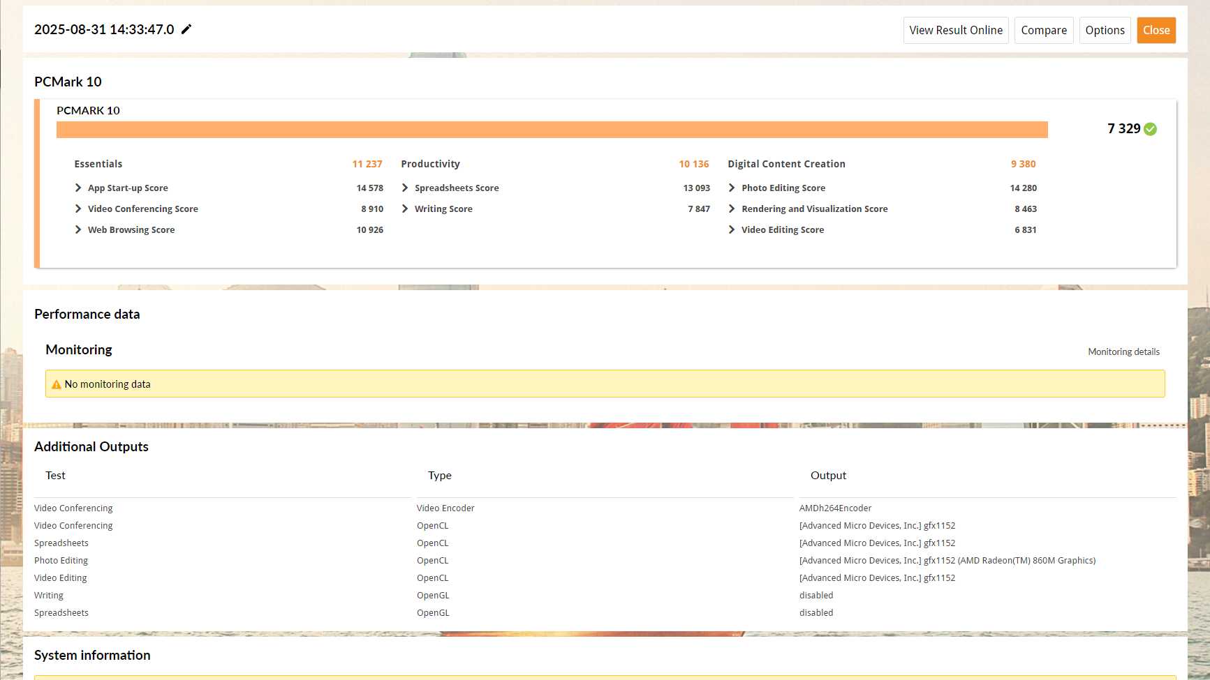 代表日常辦公使用性能的 PCMark 得分 7,329。