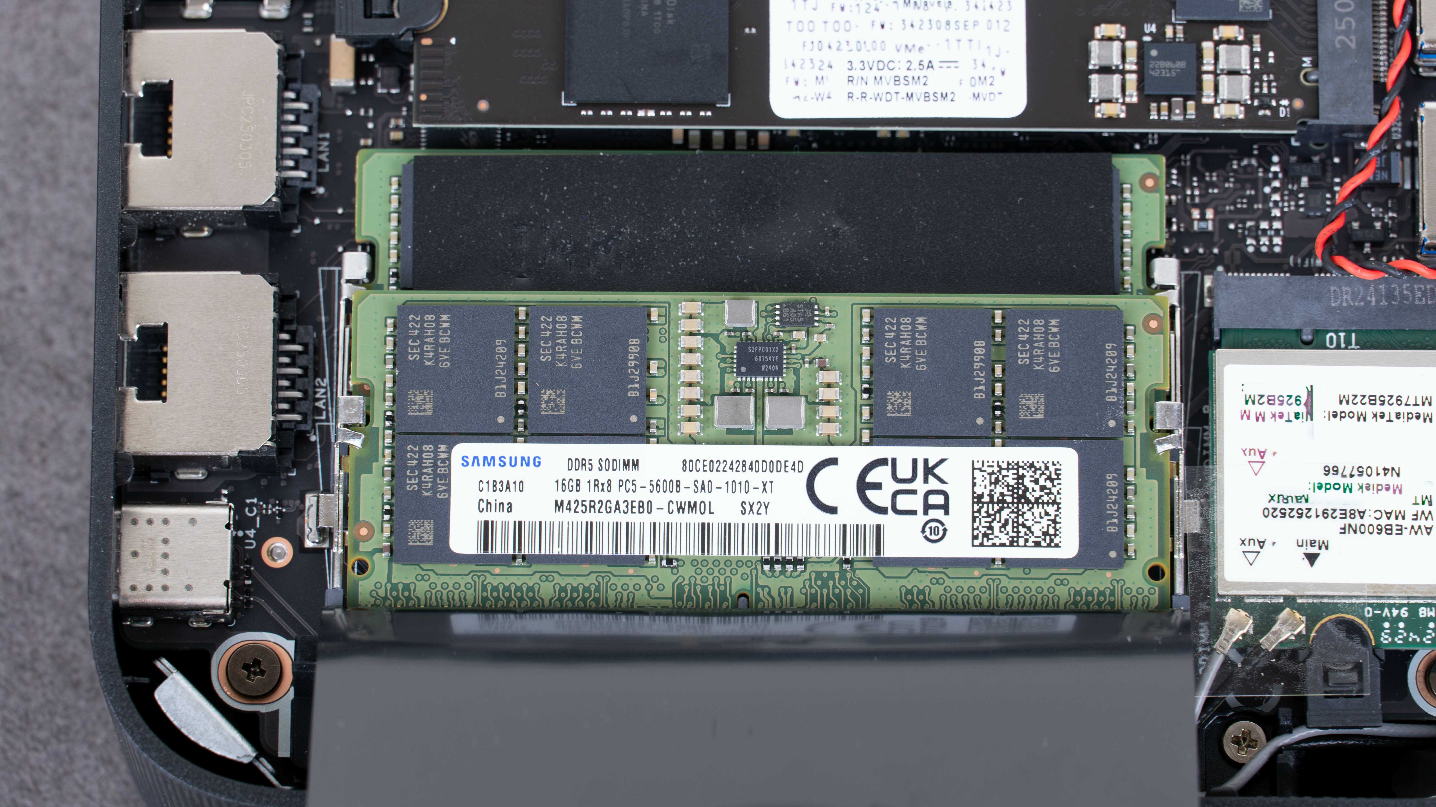 兩條 SO-DIMM 皆已插滿兩條三星的 32GB DDR5-5600 記憶體。