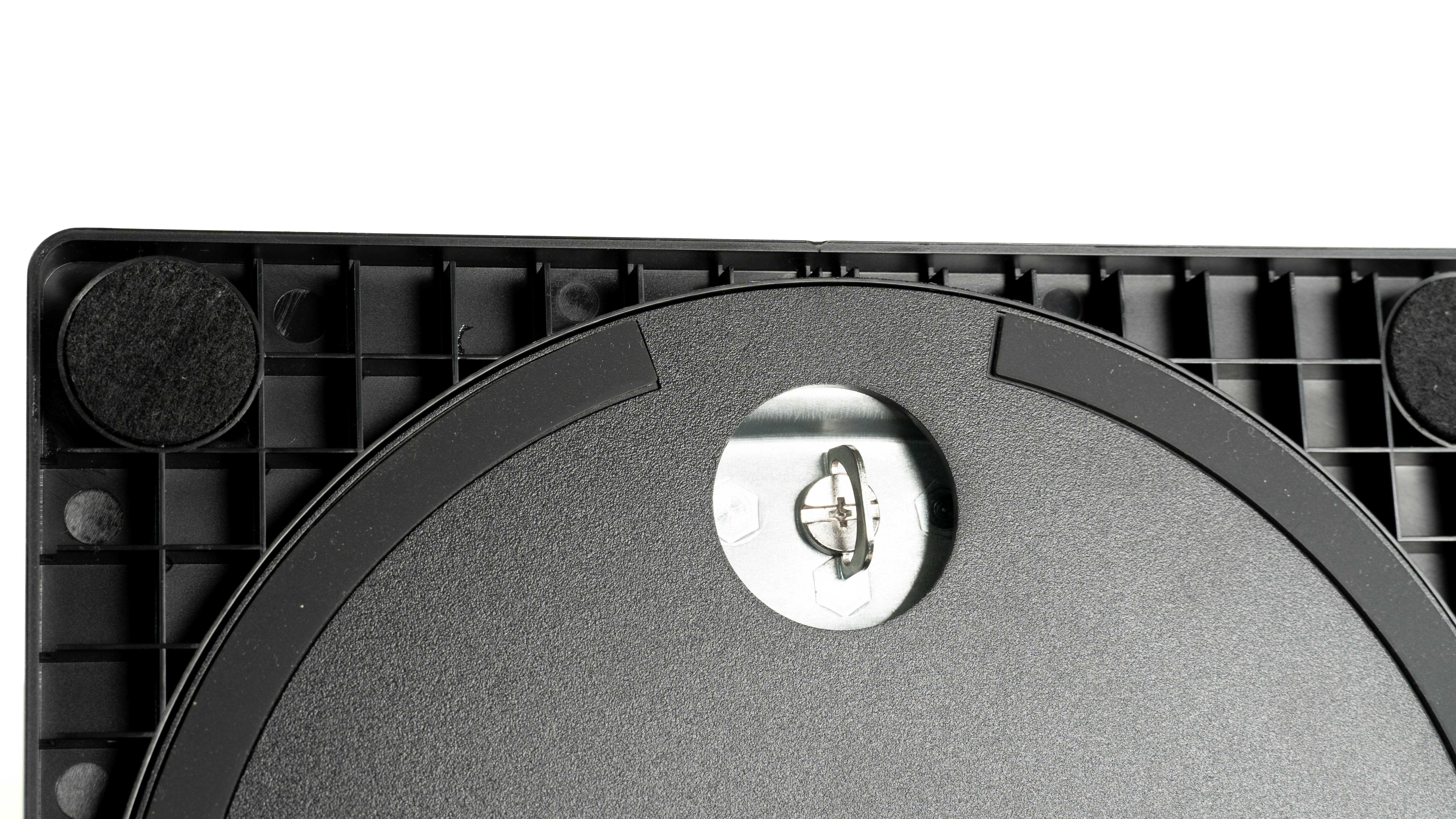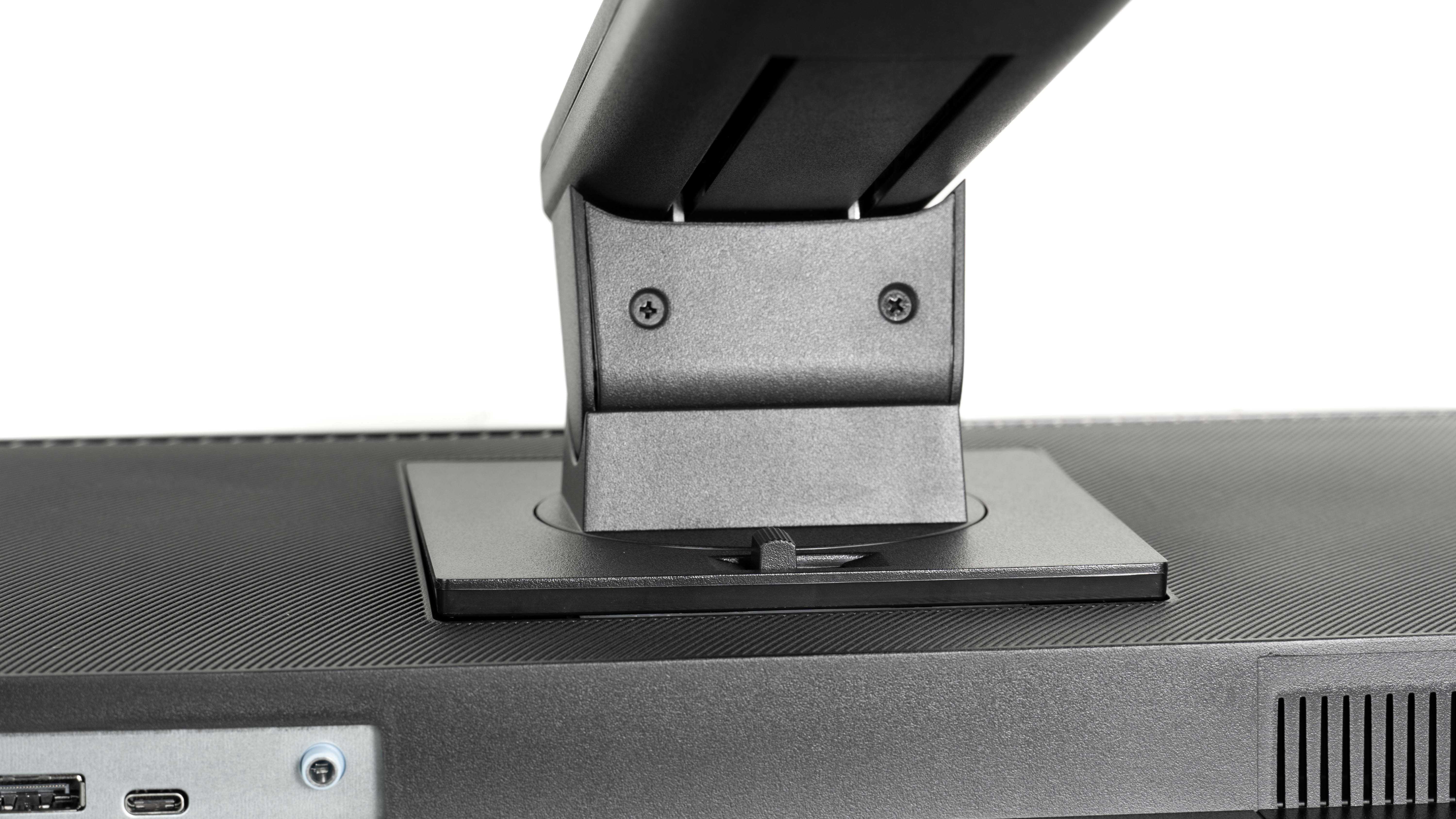 有趣的是,其底座內建了一個轉盤機構,螢幕的左右旋轉功能便是透過它來實現的。這也就代表,螢幕左右旋轉時,底座的這面也會跟著一起旋轉,挺特別。如果你會習慣把東西架在螢幕腳架上的話,這點需要注意。