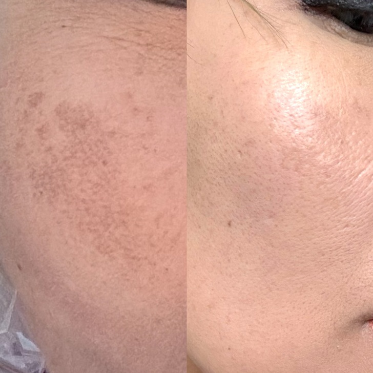 真正讓我有感的是第三週開始:底妝變薄,卡粉問題大幅下降;原本散在顴骨的曬斑淡化很多,痘疤的暗沉也不像以前死撐著不退。芭比醫師說,因為Bione是把細胞修復機制打開,膚況會一點一點往上走,不是那種一天到位、但隔兩週又打回原形的刺激型改善。她也幫我設定居家保養節奏,像是防曬要拉滿、酸類先緩一點,讓皮膚把「重建」這件事做扎實。