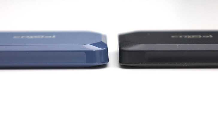 左邊黑色的是 X10 Pro,左邊藍色的是 X10。X10 採用塑膠外殼,X10 Pro 則採用金屬外殼。在定位上來說,X10 Pro 整體還是比較高階,但在外殼防塵防水只有到 IP55,反而是 X10 達到 IP65。在保固上,依舊是定位高階的 X10 Pro 更吃香,達到五年保固,X10 則有三年保固,其實也很不錯。市面上同類產品,有些只有一年、兩年保固,在這方面可以看出 Crucial 的優勢。