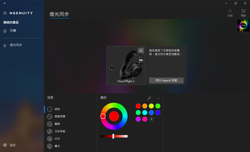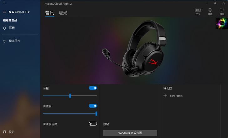 更新完成後,HyperX NGENUITY 主介面會顯示耳機的