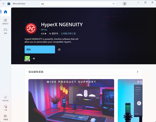 軟體控制:HyperX NGENUITY 從 Microsoft Store 直接下載安裝