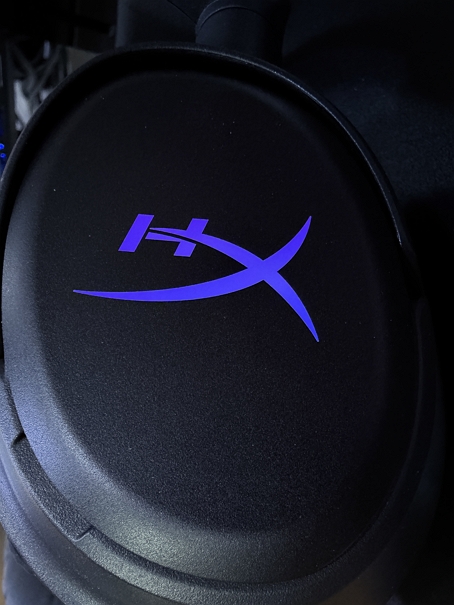 耳罩上印有銀色 HyperX Logo 低調中帶點科技感
