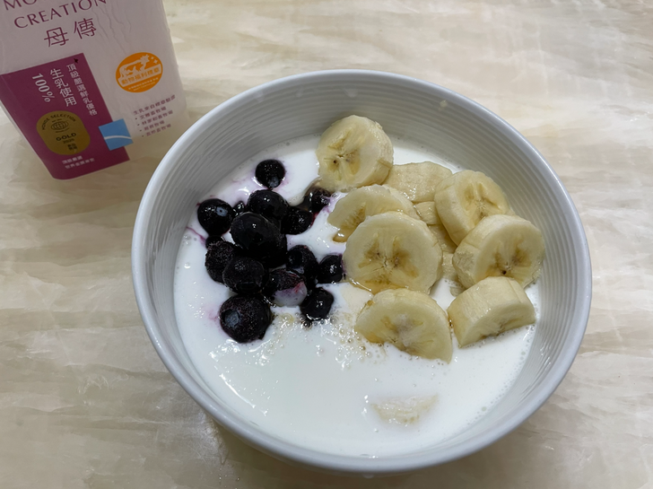 攪一攪放上藍莓、香蕉和些許蜂蜜,