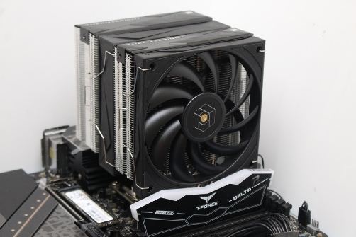 ▼Royal Knight 120本體一覽,整體算中小型雙塔雙扇散熱器,本體有偏心設計,讓記憶體的相容性更好,可以看到前塔比後塔來的瘦一點,這也是提升記憶體相容性的要素之一