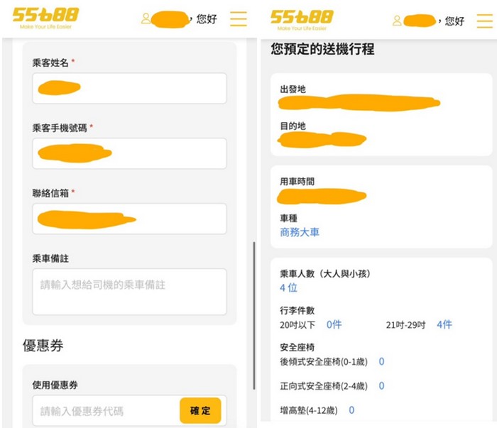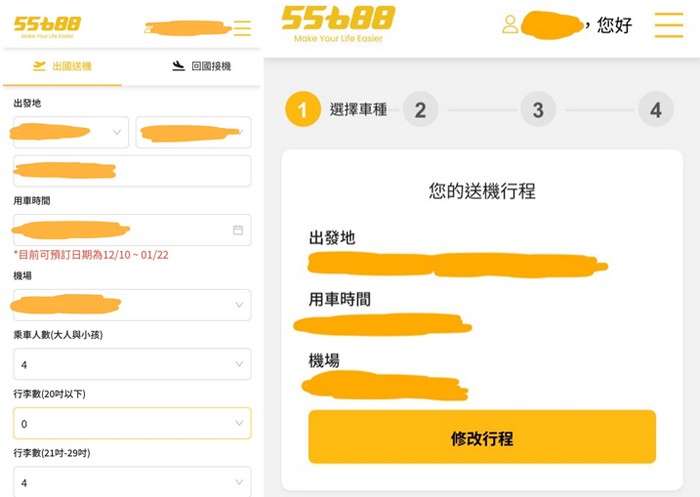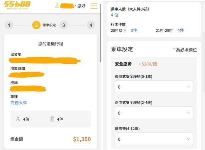 那天提早一週就在55688 App上預約機場接送