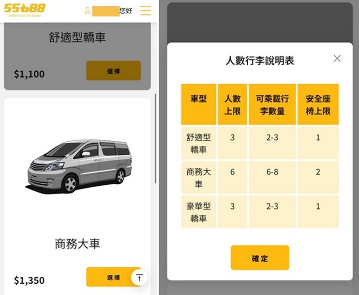 再來就是選擇要選轎車和商務大車