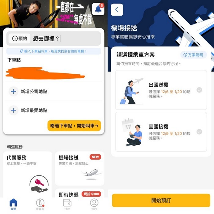 再點選是要出國叫車還是回國接機