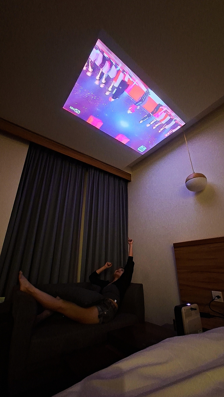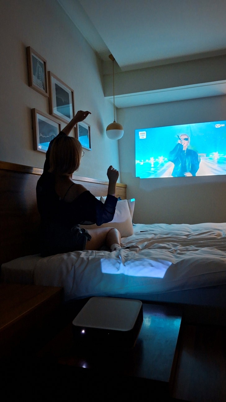 過去,飯店的夜晚總伴隨著小小的手機螢幕;現在,無論是溫馨的民宿、商旅的牆面,甚至是房間的角落,EF-61都能讓我「隨放隨投」,像是任意門一般,只需一面牆,瞬間擁有穿梭電影世界的魔法。它不再只是一台投影機,而是我拓展生活維度的「空間魔法師」。