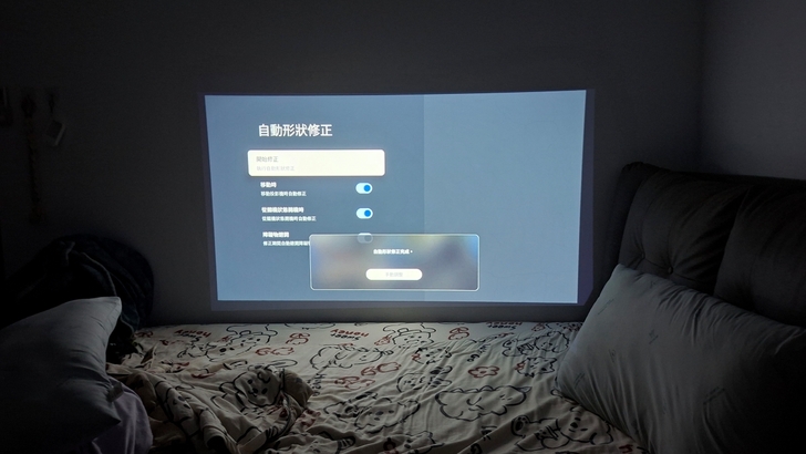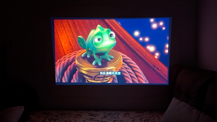 智慧校色:最讓我驚豔的是「智慧校色」!即使面對飯店的灰色牆面,它也能自動判讀牆面顏色,進行色彩調校,還原出貼近原本色彩的畫面,即使沒有白牆,也不需布幕,有牆就能投!