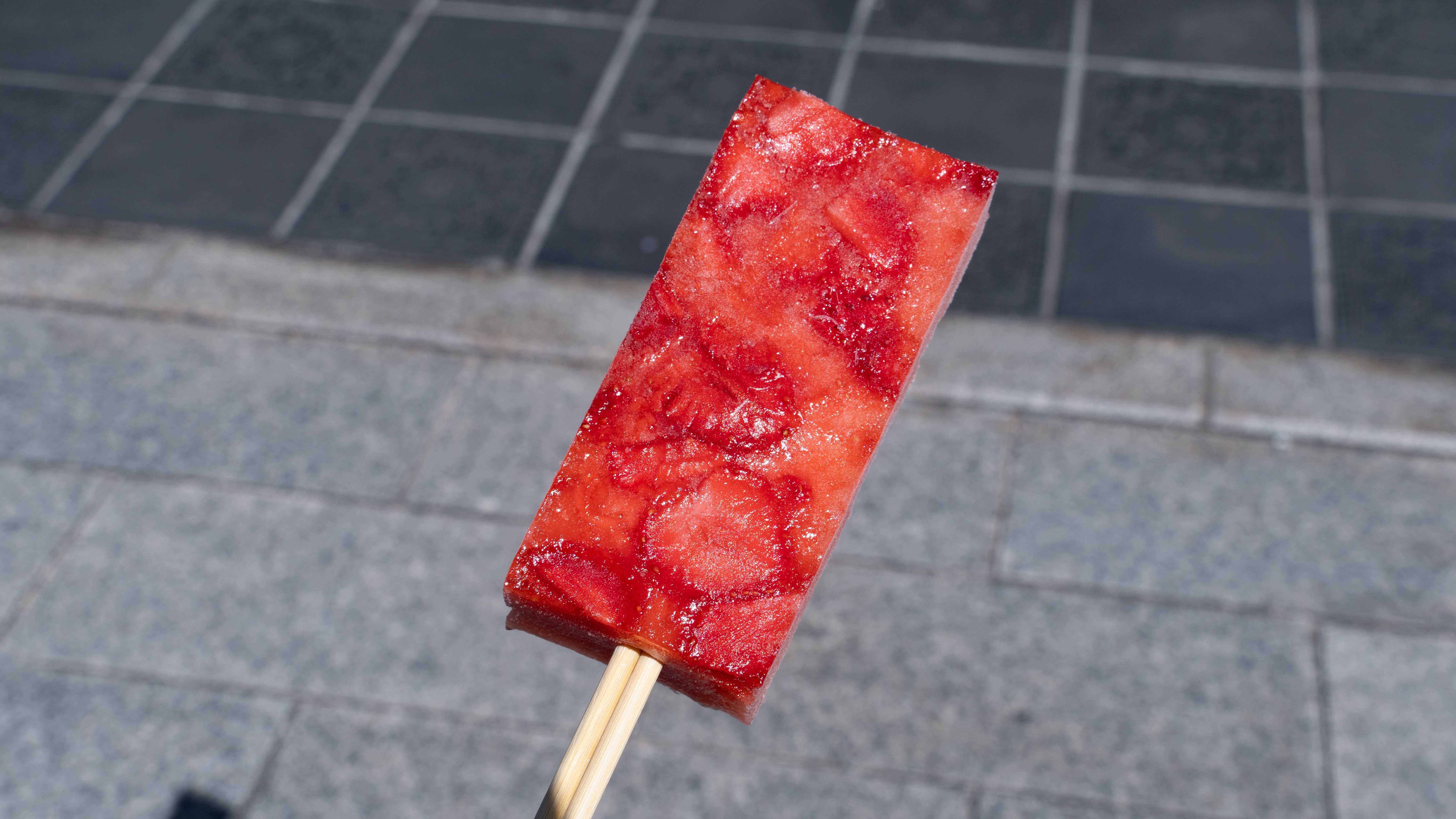 商店街的草莓冰棒值得一試,口感軟 Q,富含草莓味,相當好吃。