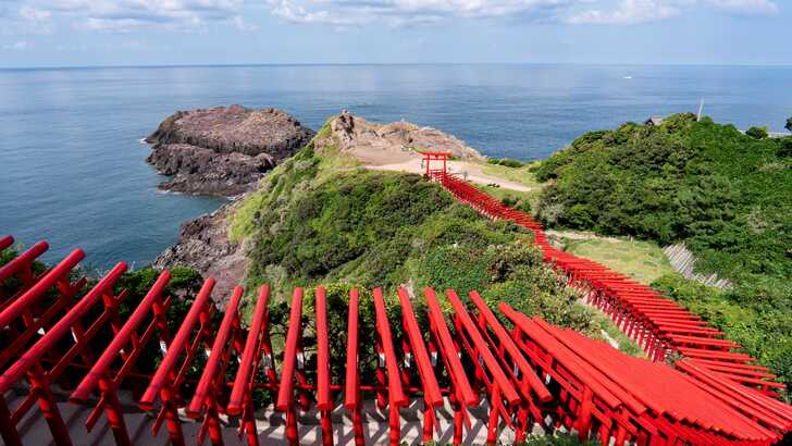 元乃隅神社的鳥居十分壯觀,一路從山上延伸到山下的海邊。
