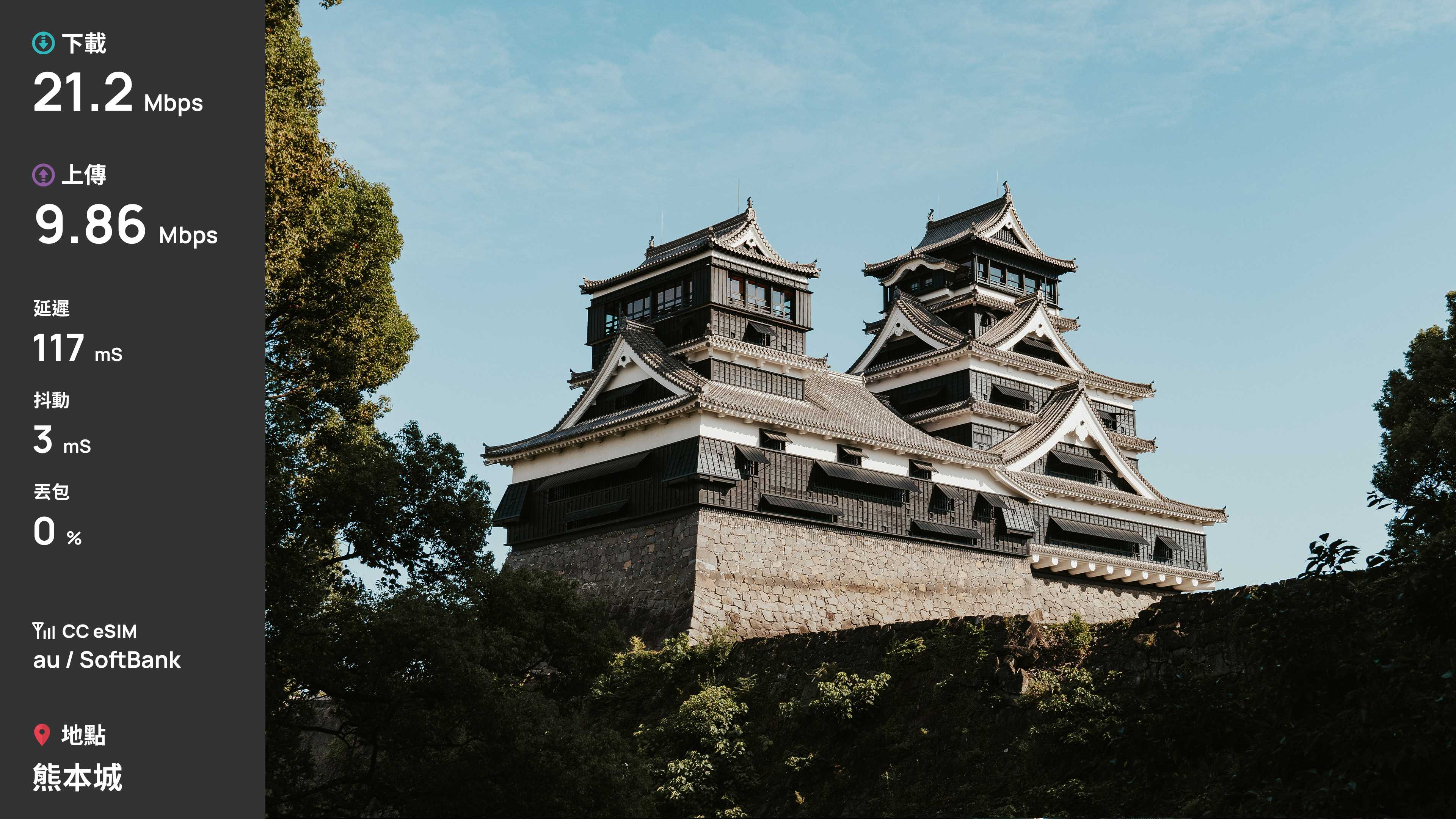 最近剛完成一趟 8 天的日本九州自由行,由於行程橫跨多個郊區,因此選擇的網路方案是 CC eSIM「雙電信 8 天 20GB」,即日 C 卡。日 C 卡支援 KDDI / au 和 SoftBank 兩家電信,雙電信支援應該超穩吧!而這也是我第一次體驗 eSIM,畢竟以前的手機不支援,但體驗過後,只能說 eSIM 的便利性確實令人驚艷。那麼,這次就藉由遊記,分享九州各景點的訊號與速度實測,看看這張 CC 雙電信 eSIM 方案的表現。