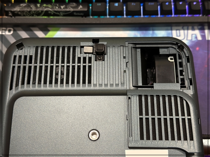 左下方的橡膠蓋可以打開,裡面是現在已經不流行的mini USB接頭,我猜應該是工程設定用的。